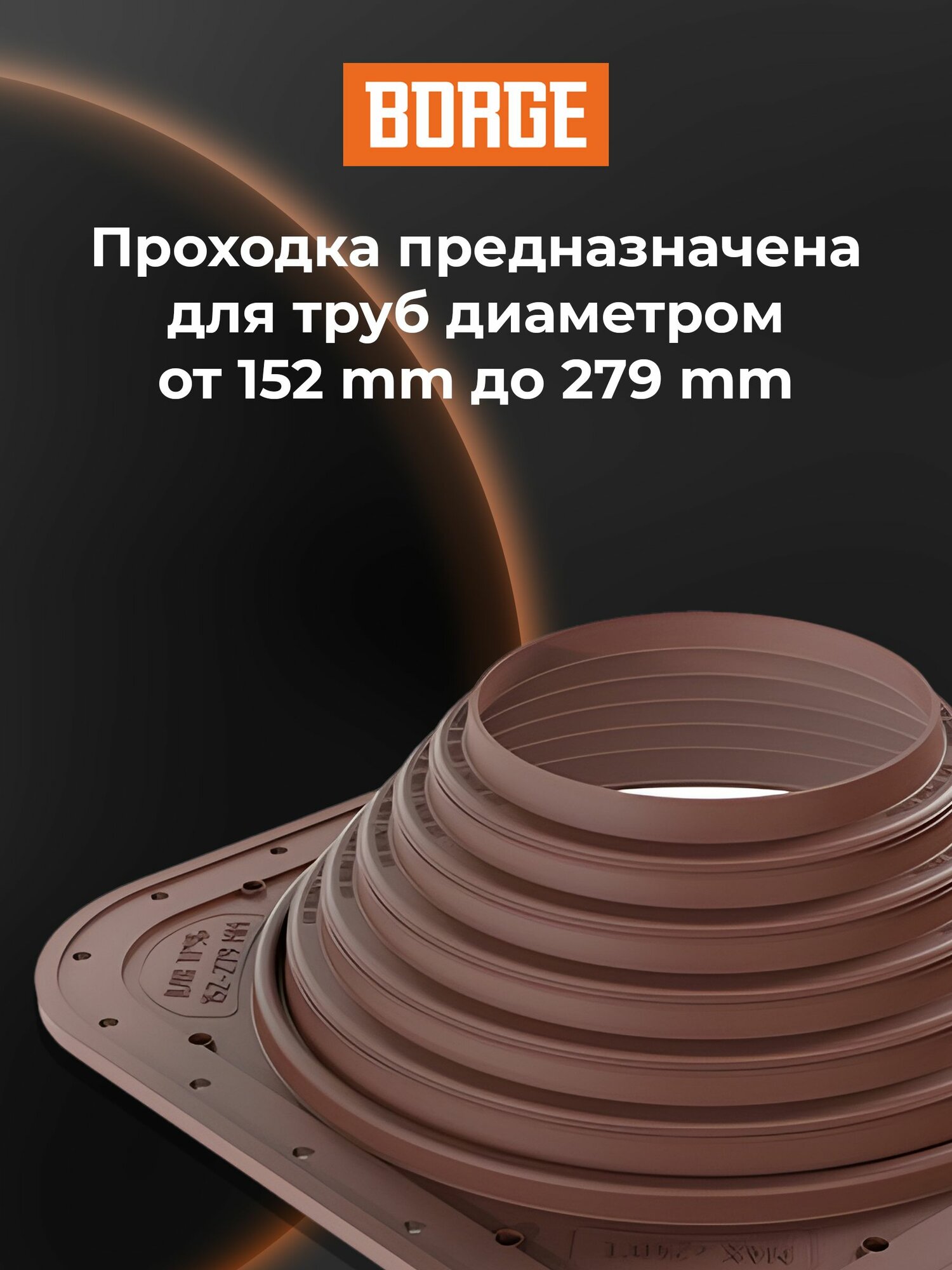 Купить Проходка кровельная BORGE прямая №7 D152-279мм, фланец 380х380мм, коричневый с доставкой по всей России.