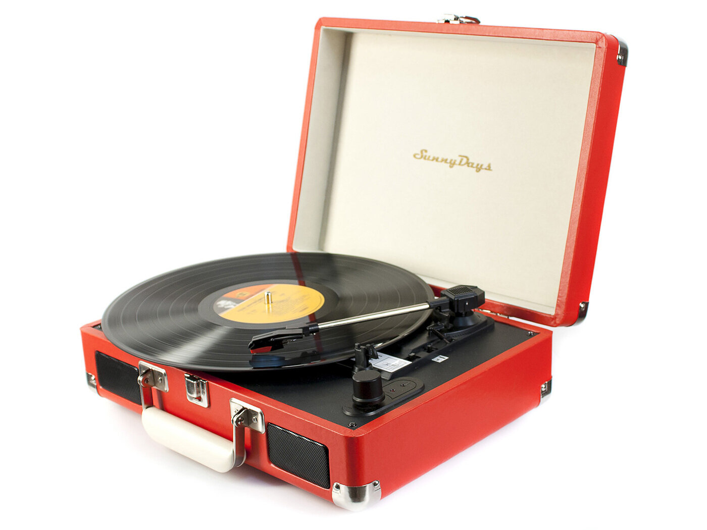 Купить Проигрыватель виниловых дисков SunnyDays, дизайнерский винтажный чемоданчик для воспроизведения пластинок и ретро винила с доставкой по всей России.