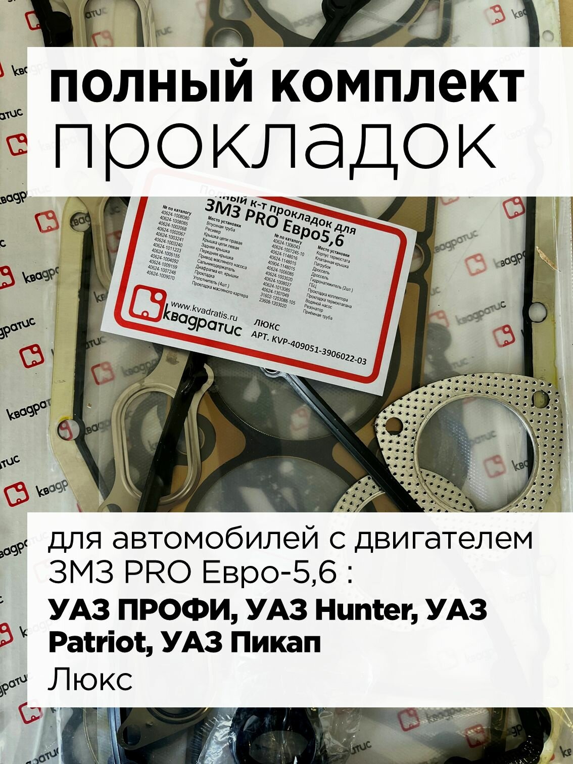 Выбирайте надежность - выбирайте прокладки “Квадратис” для вашего УАЗ Патриот, Хантер, Профи или Пикап. Защитите свой двигатель уже сегодня!