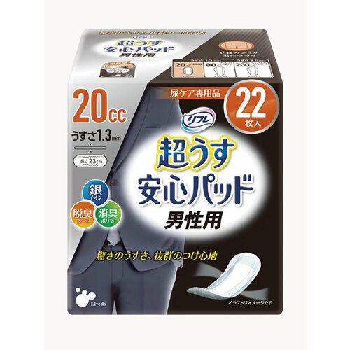 Прокладки урологические супертонкие для мужчин "Рефрэ" ("Refre") впитываемостью 20 мл - дневные прокладки на каждый день, длина 23см, толщина 1,3 мм. Очень комфортные прокладки высочайшего японского качества. Легко и надежно прилегают к белью. В одной упаковке 22 штуки. Разработаны специально для легкой и средней степени недержания мочи, надевая их вы можете не беспокоиться о пятнах на белье. Соответствует 1 капли.