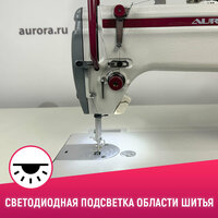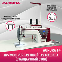 Aurora F4 - это одноигольная прямострочная швейная машина двухниточного челночного стежка с нижним продвижением, позиционером иглы, функцией плавный старт, функцией пошагового шитья и светодиодной подсветкой.