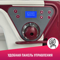 Удобная встроенная в голову намотка нити на шпульку, экономит время, нить на шпульку наматывается в процессе шитья. Рабочая зона освещается яркой LED светодиодной подсветкой из 4 ламп.