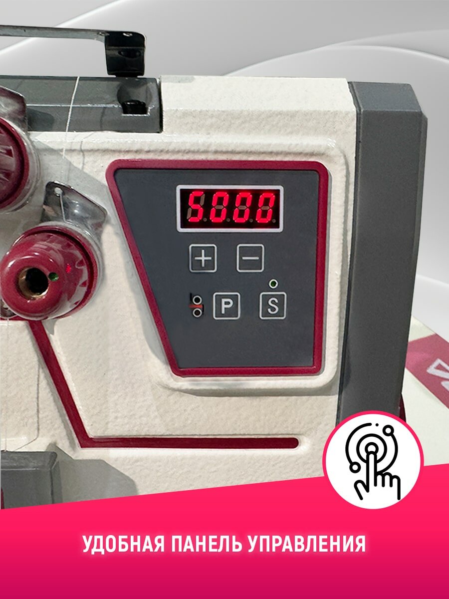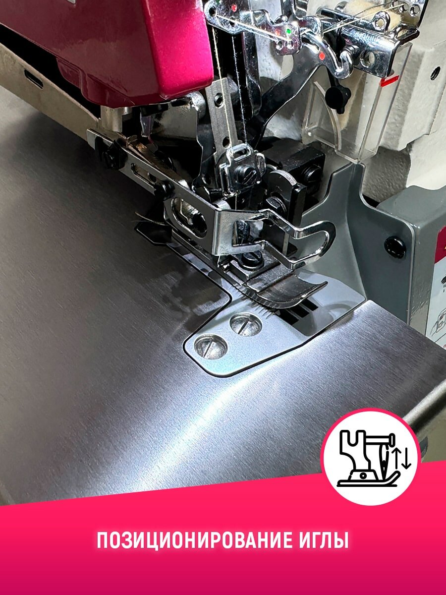 Четырехниточная двухигольная стачивающе-обметочная машина со встроенным мотором, пультом управления, регулировкой скорости, позиционированием иглы и светодиодной LED подсветкой.