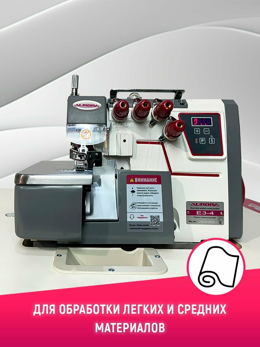 Четырехниточная двухигольная стачивающе-обметочная машина со встроенным мотором, пультом управления, регулировкой скорости, позиционированием иглы и светодиодной LED подсветкой.