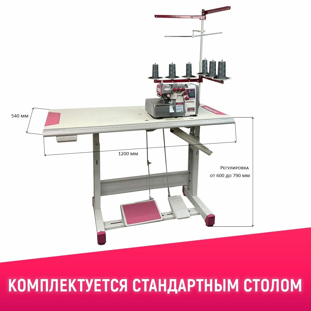 Шестиниточная трехигольная стачивающе-обметочная машина со встроенным мотором, пультом управления, регулировкой скорости, позиционированием иглы и светодиодной LED подсветкой.