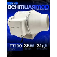 Промышленный приточно вытяжной вентилятор Vector TURBO ТТ 100, две скорости ,(двухскоростной) воздухообмен 180/220 м3/ч, Обороты в минуту 1800/2600 диаметр 100 мм.: сравнение цен, характеристики, фото, актуальное наличие и цены.