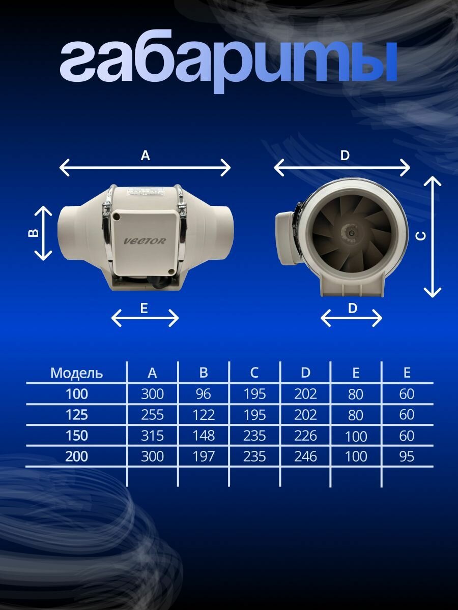 Промышленный приточно вытяжной вентилятор Vector TURBO ТТ 150 две скорости ,(двухскоростной) воздухообмен 420/540 м3/ч, Обороты в минуту 20000/2600 диаметр 150 мм.: сравнение цен, характеристики, фото, актуальное наличие и цены.