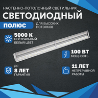 Светодиодный промышленный светильник Полюс 100 Вт, 13500 Lm, IP65 подходит для освещения цехов, промышленных объектов, производственных помещений, складов, подземных парковок, автомоек и т. д. Светильники Полюс предназначены для внутреннего и внешнего использования, температурный диапазон составляет -40/+55 °С. Установка производится на потолки до 12 метров, возможна установка подвесным способом.