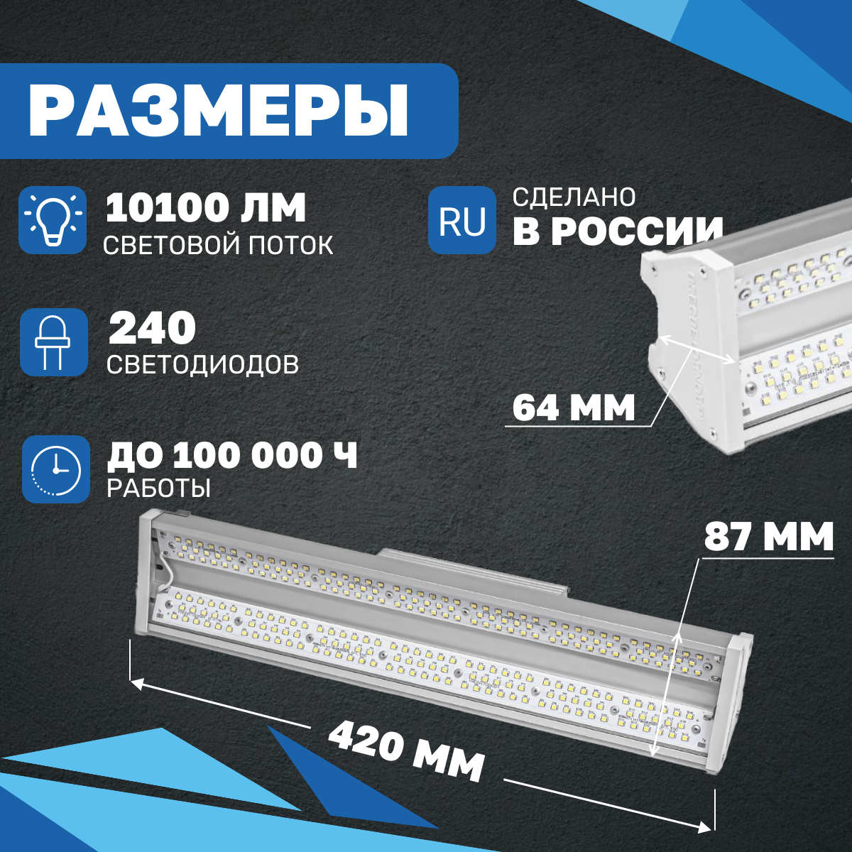 Светодиодный промышленный светильник Полюс 75 Вт, 10100 Lm, IP65 подходит для освещения цехов, промышленных объектов, производственных помещений, складов, подземных парковок, автомоек и т. д. Светильники Полюс предназначены для внутреннего и внешнего использования, температурный диапазон составляет -40/+55 °С. Установка производится на потолки до 12 метров, возможна установка подвесным способом.