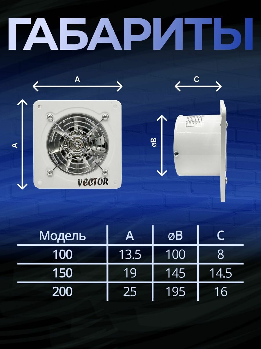 Промышленный вытяжной вентилятор Vector VBS 100, воздухообмен 180 м3/ч, с обратным клапаном, 20 Вт: сравнение цен, характеристики, фото, актуальное наличие и цены.