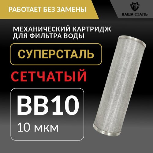Промывной сетчатый картридж «суперсталь» стандарта BB10 (10 микрон) из нержавеющей стали для фильтра грубой механической очистки воды аналогичного стандарта Big Blue 10