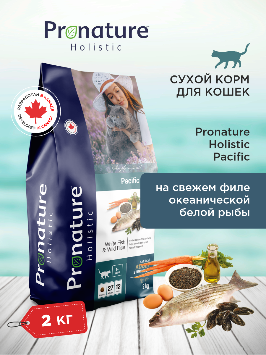 свежее филе океанической белой рыбы (19%), дегидрированное филе белой рыбы, дикий рис (7,5%), бурый рис, перловая крупа, овсяная крупа, дегидрированное филе сельди, куриный жир, фруктовая смесь (3% содержащая дегидрированную мякоть яблок, дегидрированную чернику, дегидрированный ананас), гидролизат куриной печени, рис, сушеный картофель, дегидратированное яйцо, горох, дегидрированная мякоть томата, цельное льняное семя, соль, экстракт дрожжей, сушеный корень цикория, глюкозамина сульфат, экстракт Юкки Шидигера, хондроитин сульфат, новозеландские зеленые мидии, морепродукты, огурец, оливковое масло, сушеные водоросли, сушеная люцерна, сушеный японский зеленый чай, смесь трав (0,02% содержит сушеный розмарин, сушеную петрушку, сушеные листья мяты, куркуму), сушеный шпинат, сушеная брокколи, сушеная морковь, сушеная цветная капуста, рожковое дерево, мед, лебеда, экстракт ягод можжевельника, семена аниса.