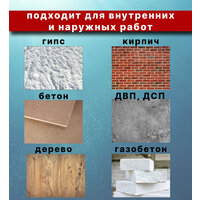 -имеет отличную адгезию ко всем типам строительных и отделочных материалов: гипс, кирпич, бетон, газобетон, ДСП, ДВП, ГКЛ, СМЛ, фанера, рулонные отделочные и кровельные материалы, дерево (кроме силикона и полиэтилена).