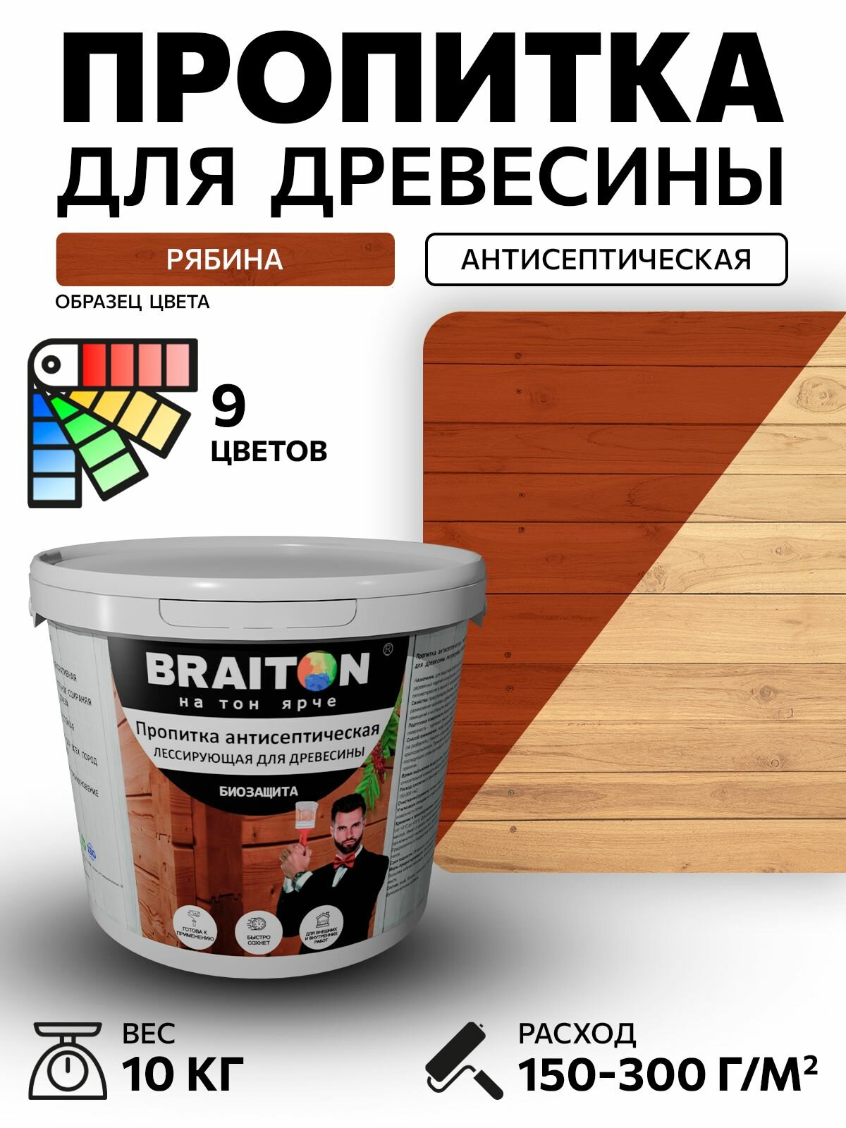 Пропитка антисептическая акриловая Braiton для древесины лессирующая биозащита 10 кг. Цвет Рябина , по дереву для наружных и внутренних работ: сравнение цен, характеристики, фото, актуальное наличие и цены.