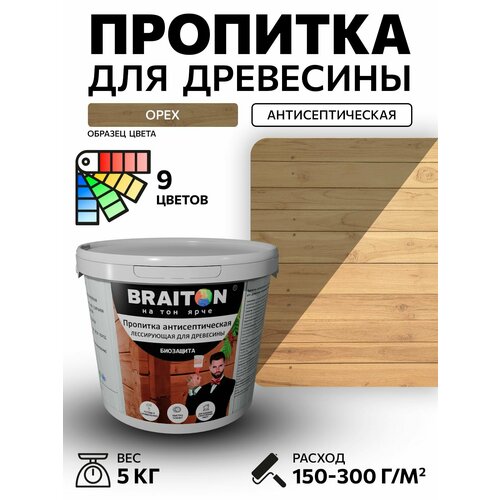 Антисептическая акриловая пропитка для древесины от Braiton — идеальное решение для защиты деревянных поверхностей. Этот продукт разработан с учетом современных требований к уходу за древесиной, обеспечивая надежную защиту от воздействия влаги, грибка и насекомых.