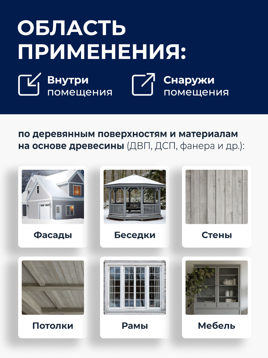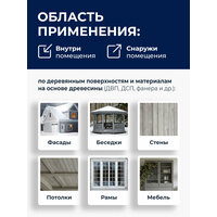 внутри и снаружи помещений по деревянным поверхностям (стены, потолки и пр.) и материалам, по основе древесины (ОСП, ДВП, ДСП фанера и др.); фасады домов, беседки, садовые строения, малые архитектурные формы и пр.