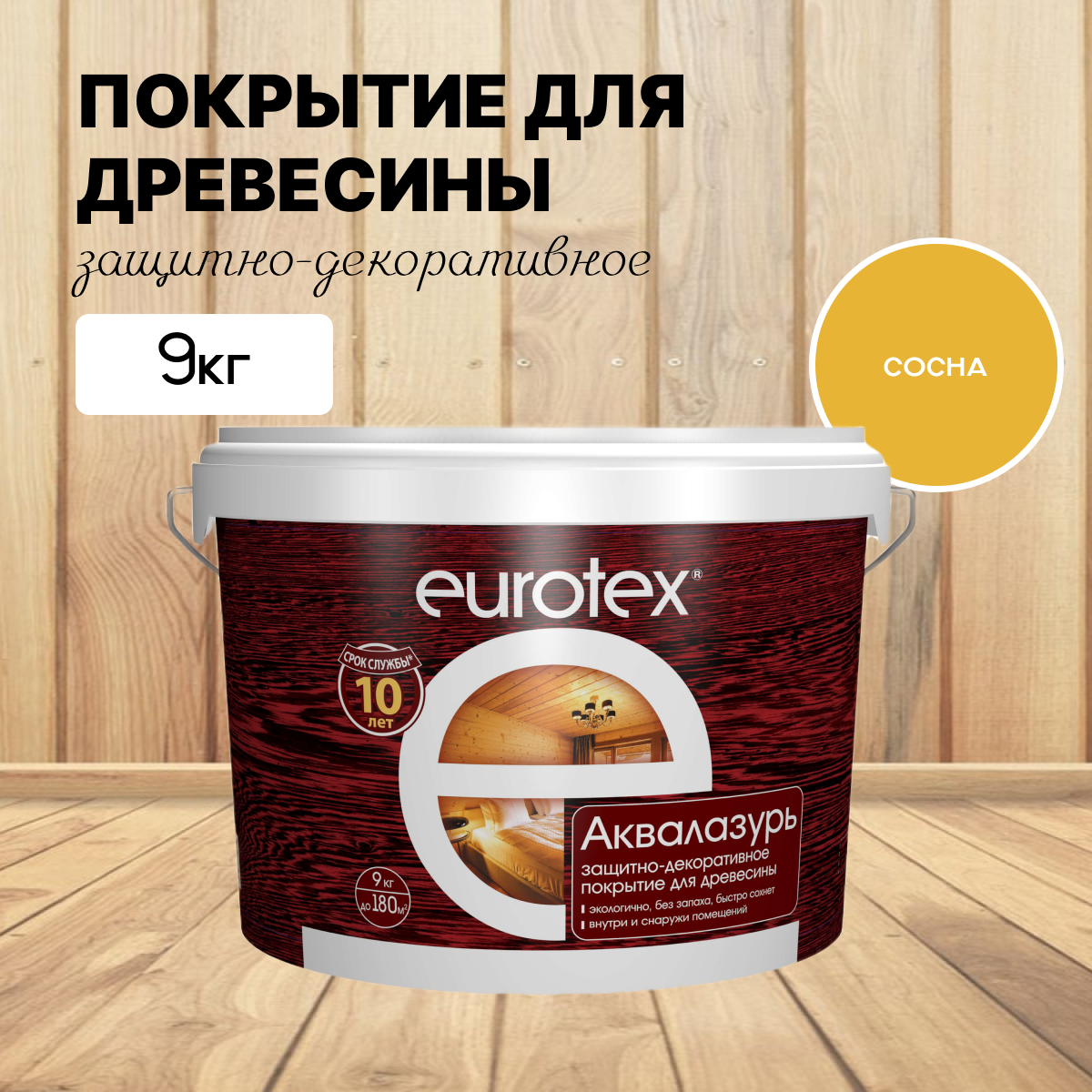 Купить Пропитка для дерева EUROTEX Аквалазурь сосна 9л (Рогнеда) с доставкой по всей России.