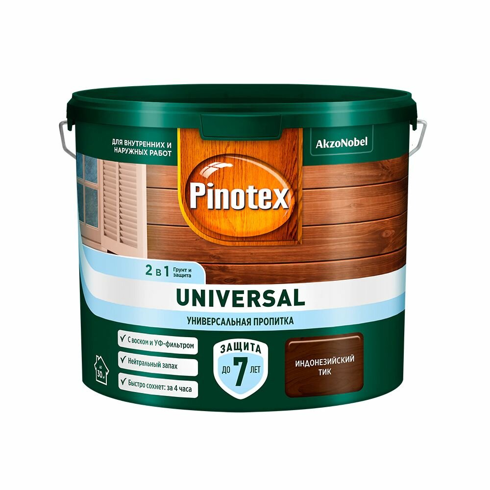 Пропитка Pinotex Universal 2 в 1 Индонезийский тик 2,5л: сравнение цен, характеристики, фото, актуальное наличие и цены.