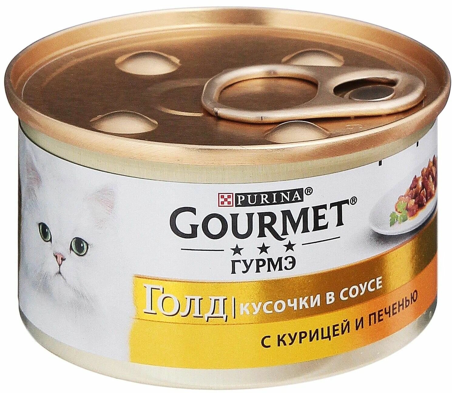 Pro Plan GourmetGold Консервированный корм для кошек с куриной печенью предназначен для взрослых кошек в возрасте от 1 до 7 лет с нормальным уровнем активности. Он разработан как полностью сбалансированный корм для всех и биологически активных питательных веществ с учетом ежедневных энергетических потребностей взрослых кошек.