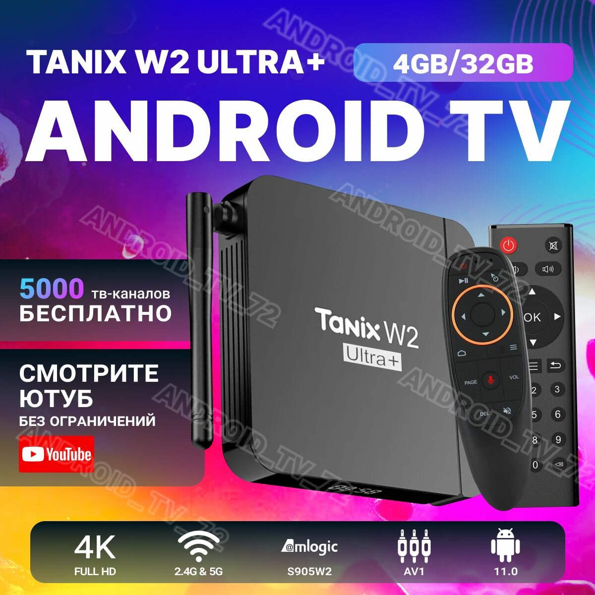 Купить Прошитая Tanix W2 Ultra + Wi-Fi 4GB/32GB S905W2 смарт ТВ приставка + Аэропульт Vontar G10s медиаплеер с доставкой по всей России.