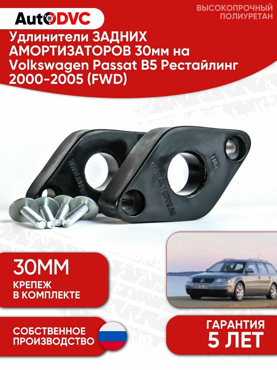 Проставки опоры заднего амортизатора 30мм на Volkswagen Passat B5 Рестайлинг 2000-2005 (FWD), для увеличения клиренса, AutoDVC: сравнение цен, характеристики, фото, актуальное наличие и цены.