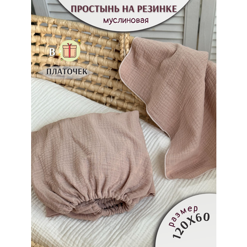 Купить Простынь на резинке 120х60 муслиновая с доставкой по всей России.