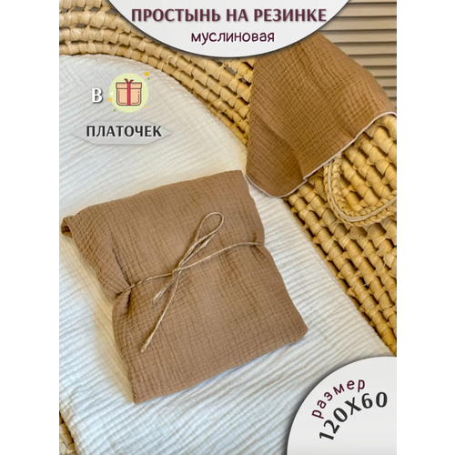 Купить Простынь на резинке 120х60 муслиновая с доставкой по всей России.