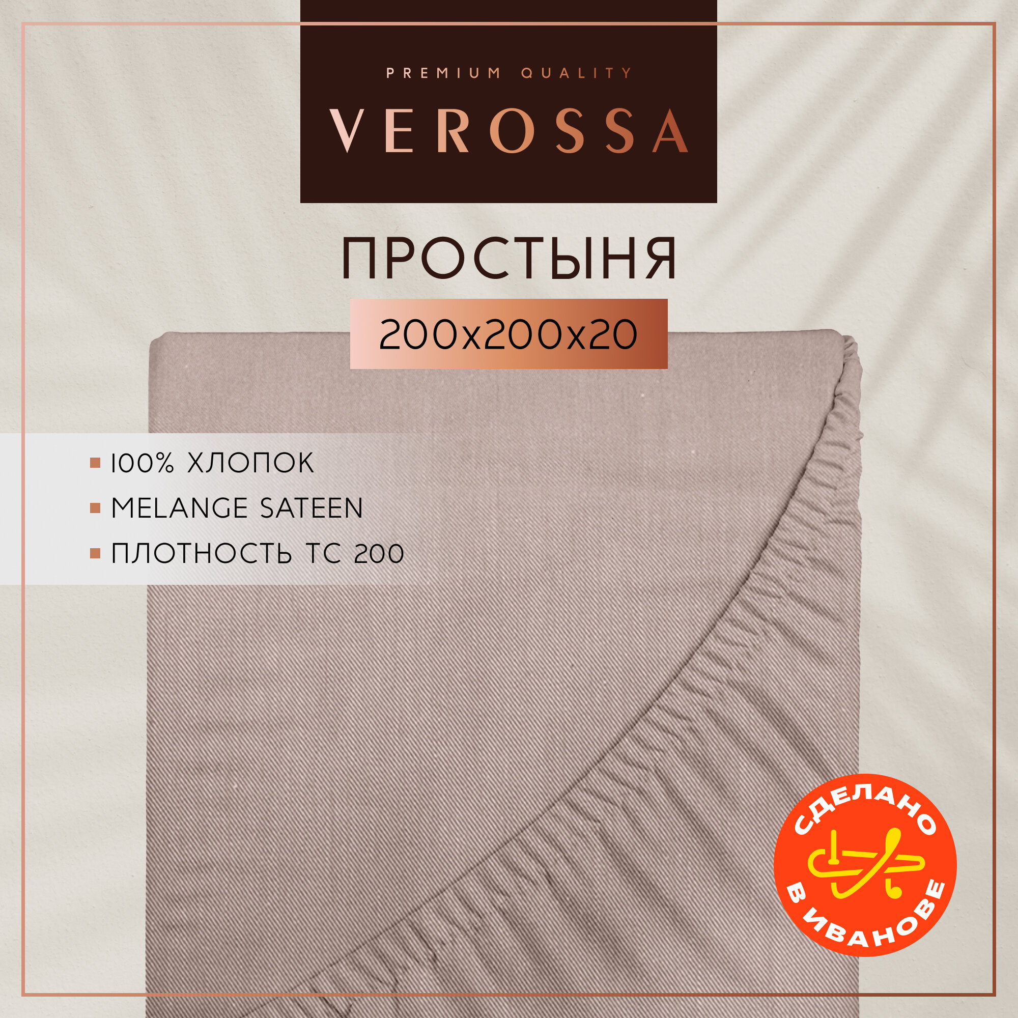 Простынь на резинке 200х200 см Verossa, сатин меланж, хлопок 100%