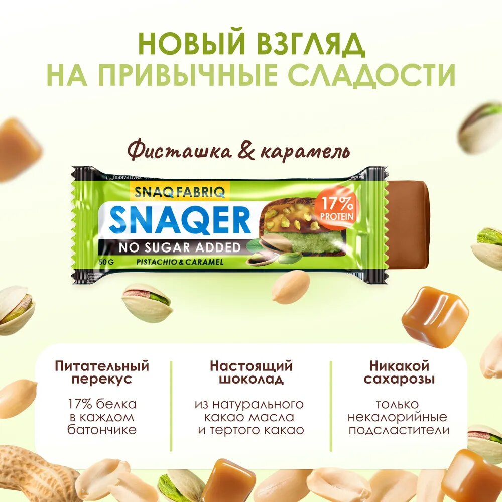 Протеиновые батончики SNAQ FABRIQ SNAQER, Фисташка и карамель, 30 шт по 50 г: сравнение цен, характеристики, фото, актуальное наличие и цены.
