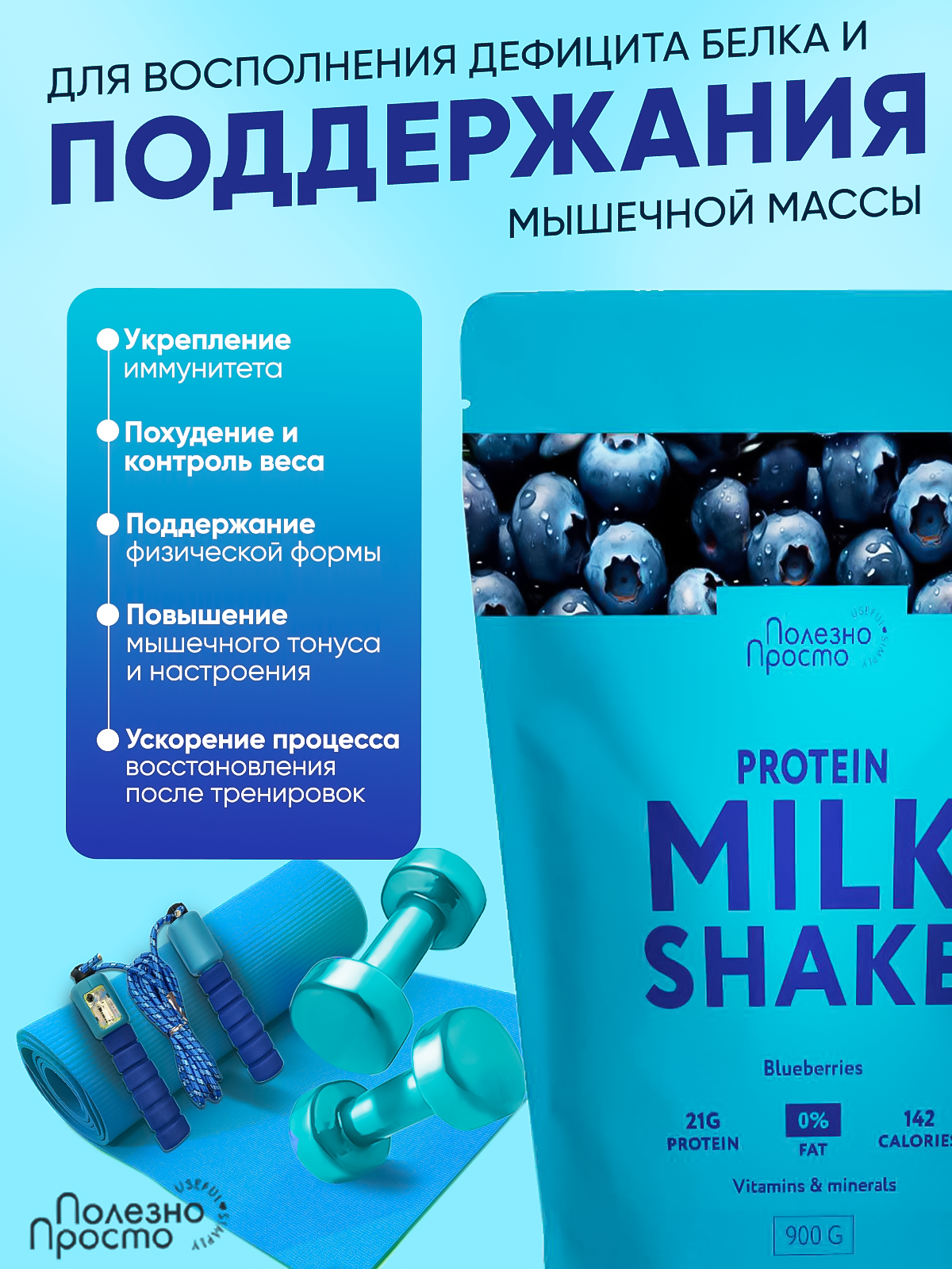 Купить Протеиновый коктейль Полезно Просто «Черника», без сахара, с пребиотиком, 900 г с доставкой по всей России. Протеиновый коктейль Полезно Просто «Черника», без сахара, с пребиотиком, 900 г: сравнение цен, характеристики, фото, актуальное наличие и цены.