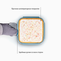 - Прочное двухслойное, нетоксичное, антипригарное покрытие, не содержащее PTFE, PFAS, PFOA, свинца и кадмия.