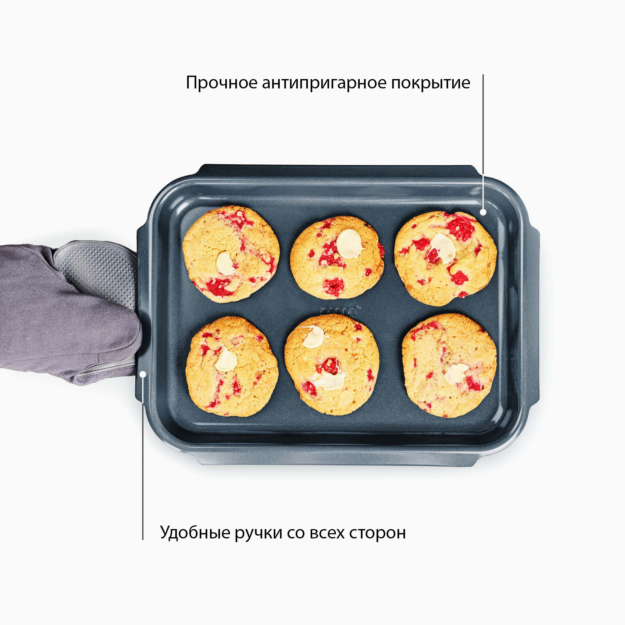 Стильный противень для запекания изготовлен из толстой углеродистой стали и оснащен удобными ручками по всех сторон, которые обеспечивают надежный захват при использовании прихваток.
