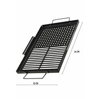 • продукты не прилипают к противню благодаря антипригарному покрытию, • две гриль-зоны позволяют готовить как «правильные» стейки, так и измельченные продукты, • дополнительную устойчивость противня на гриле обеспечивают выступы на дне, • складные ручки позволяют располагать их за пределами горячей зоны мангалаСковорода-гриль FORESTER c антипригарным покрытием
