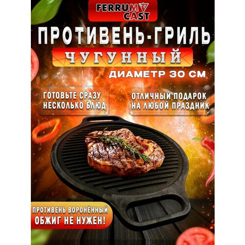 Уважаемые покупатели рады представить Вам противень-гриль из чугуна от компании Ferrum Cast. Он идеально подойдёт для приготовления пищи как на костре, так и в духовом шкафу, а также плите. На этой посуде Вы сможете с удовольствием приготовить любое мясо, рыбу, овощи, а также бургеры, пиццу, гренки, хот-доги и многое-многое другое, на что хватит вашей фантазии. Изделие выполнено из настоящего жаропрочного чугуна, одним из преимуществ которого является долговечный срок службы. Чугун равномерно распределяет тепло по всей поверхности гриля, что обеспечит равномерную прожарку продукта, а борта, которые находятся вдоль всей поверхности противня сохранят сок и сочность вашего блюда. Перед первым использованием противня ПГ-3 необходимо его прокалить на мангале или плите с использованием соли с последующим нанесением слоя растительного масла (лучше всего использовать льняное). А противень ПГ-3В полностью готов к использованию (прошел процедуру "воронения" в масле на производстве при температуре 700 градусов, в специальной печи) и не требует дополнительного прокаливания. Барбекю решетка дает возможность готовить на рыбалке, даче или во время веселого пикника на природе. На решетке легко приготовить вкусный стейк, аппетитный шашлык, сочные свиные ребрышки, нежную курицу, рыбу, любое мясо на ваш выбор и полезные овощи. Благодаря своей прочности, она может использоваться не только как решетка для барбекю, но и как подставка для казана.