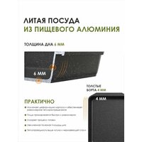 Противень для духовки с антипригарным покрытием Гранит от немецкой марки Greblon является полностью безвредным для вашего здоровья при готовке ваших любимых блюд. Противень подходит для всех видов плит, кроме индукционных. Противень для духовки с антипригарным покрытием можно приготовить самые вкусные блюда. Рекомендации: используйте противень в духовом шкафу при температуре до 250 градусов. Дайте посуде остыть, прежде чем поместить ее в воду. Используйте на противне только деревянные и силиконовые приборы. Можно использовать в посудомоечной машине только в режиме "Эко" и нельзя мыть абразивными средствами. Внутренние размеры: длина - 28,2 см, ширина 20,5 см, высота - 5 см. Внешние размеры: длина - 33 см, ширина 22 см, высота - 5,5 см. Для приготовления пищи в духовке (духовом шкафу) идеально подходит противень из высококачественного пищевого алюминия с антипригарным покрытием. Толщина стенок и дна формы для запекания гарантирует ее долговечность и исключает ее деформацию. Противень для выпечки равномерно распределяет и сохраняет тепло после выключения духовки, даже без использования крышки. Идеально подходит противень для пиццы, противень для выпечки. Готовая выпечка без усилий извлекается благодаря усиленному антипригарному покрытию. Форма для выпечки не силиконовая удобна в использовании и проста в уходе, её можно мыть в посудомоечной машине. Протвини Мечта позволят превратить обыкновенный процесс приготовления пищи в приятное занятие для любой хозяйки! Посуда торговой марки мечта – это приятный и практичный подарок для любого случая! Посуда для кухни, посуда для приготовления, кухонная утварь - все это есть у тм Мечта.
