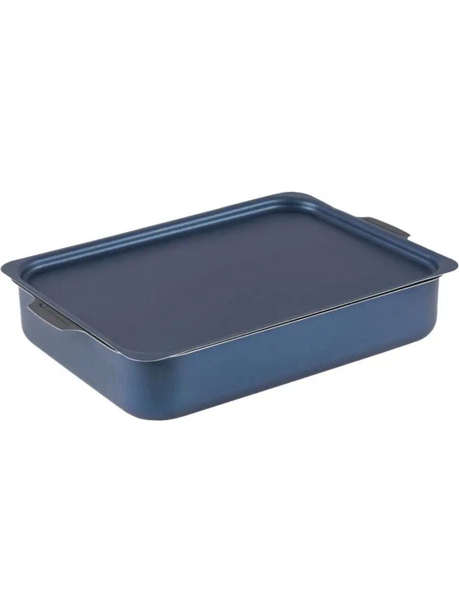 Легкий, удобный и красивый противень KALITVA AZURE Сатин вместительной прямоугольной формы с крышкой и удобными ручками идеально подходит для приготовления десертов, запеканок и многослойных вторых блюд в духовке. Европейское антипригарное покрытие надежно защитит продукты от прилипания к стенкам и дну даже с минимальным использованием масла в режиме запекания. Внешнее декоративное покрытие рассчитано на интенсивное использование, легко моется и надолго сохраняет свой яркий цвет. Корпус с крышкой из штампованного алюминия оптимальной толщины 0,9 мм быстро и равномерно нагревается на всю глубину, сохраняя тепло внутри и бережно доводя содержимое до полной готовности. С противнем Сатин бренда Kalitva можно легко разнообразить повседневное меню и смело экспериментировать с основными блюдами и десертами из любых продуктов. Размер: Длина - 25см. Ширина - 19см. Высота - 5.7см. Толщина стенок: 0.9мм.