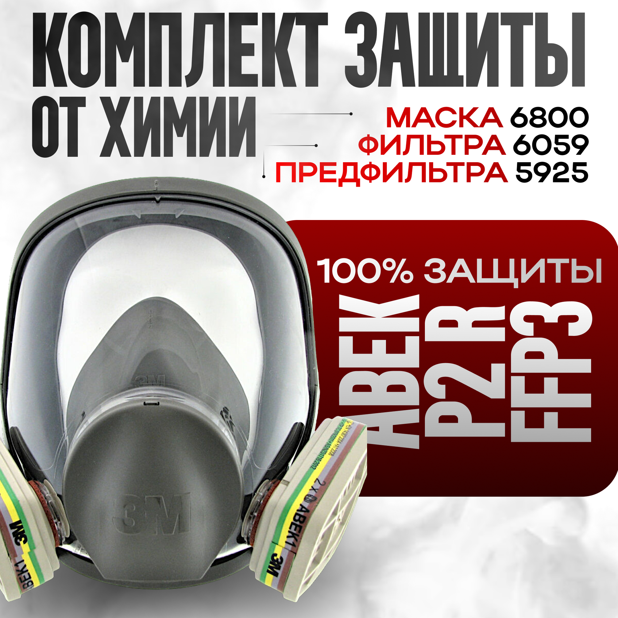 - 6059 (AВЕК1) - фильтры с защитой от органических газов и паров с точкой кипения > 65°C , неорганических паров , кислых газов , аммиака и его производных. Виды работ : покраска распылением, растворители (толуол, ксиол), смолы, лакокраски, адгезивы, хлор, циановодород, сернистый ангидрид, сероводород, аммиак, метиламин