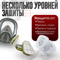 Многофункциональность полных масок 3М серии 6000 позволяет использовать их не только на промышленных и строительных производствах, но и в сельском хозяйстве, дома, на даче, где приходится контактировать с пестицидами, краской и растворителями.Оснащенная клапанами «вдох – выдох», маска 3М не затрудняет дыхание и общение, сводит до минимума накопление внутри изделия теплого воздуха и влаги.Для определения размера маски: 1) определяется ширина лица, для чего измеряется максимальная горизонтальная ширина лица вдоль скуловых дуг – костная дуга, расположенная горизонтально скулы до наружного уха; 2) определяется длина лица, для чего измеряется вертикальное расстояние от нижней части подбородка до самой глубокой точки на переносице. Размеры масок 3M серии 6000: 6700 - S малый (длина лица 93,5–113,5 мм, ширина лица 117,5–135,5мм), 6800 - М средний (длина лица 103,5–123,5 мм, ширина лица 126,5–144,5 мм), 6900 - L большой (длина лица 113,5–133,5 мм, ширина лица 135,5–153,5 мм).Необходимо знать, что полными масками 3М серии 6000 нельзя пользоваться в среде с низким содержанием кислорода.для полнолицевых масок 6000 серии предлагается широкий ассортимент аэрозольных И противогазовых фильтр-патронов:
