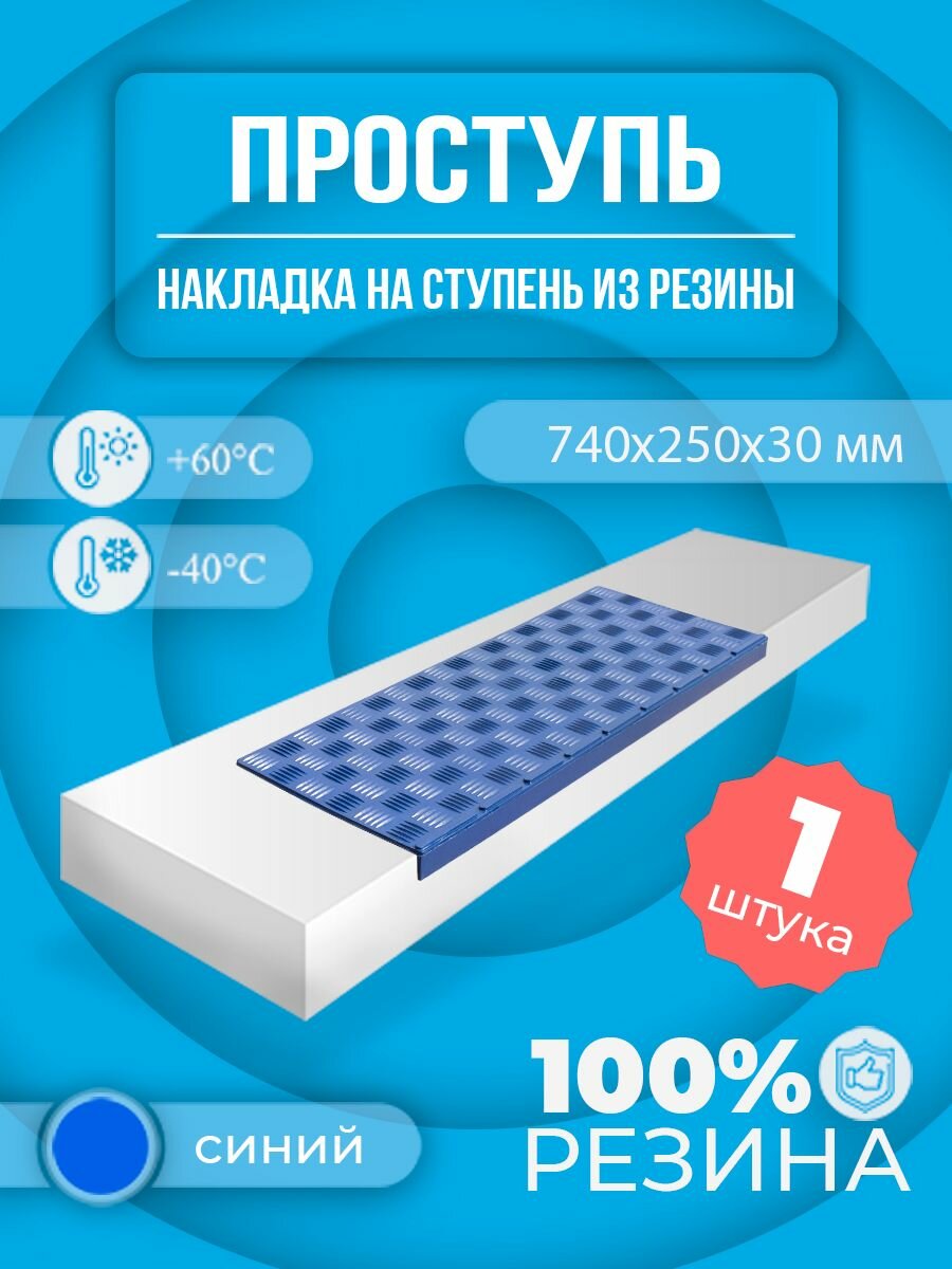 Противоскользящая накладка на ступень малая угловая (Проступь резиновая) 740х250х30 мм, Синяя: сравнение цен, характеристики, фото, актуальное наличие и цены.