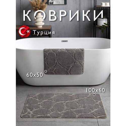 В комплект входят два коврика: большой 100х60 см для ванной комнаты и маленький 60х50 см для туалета. Оба коврика выполнены из 100% полипропилена, что делает их прочными и долговечными.