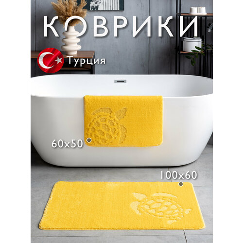 В комплект входят два коврика: большой 100х60 см для ванной комнаты и маленький 60х50 см для туалета. Оба коврика выполнены из 100% полипропилена, что делает их прочными и долговечными.
