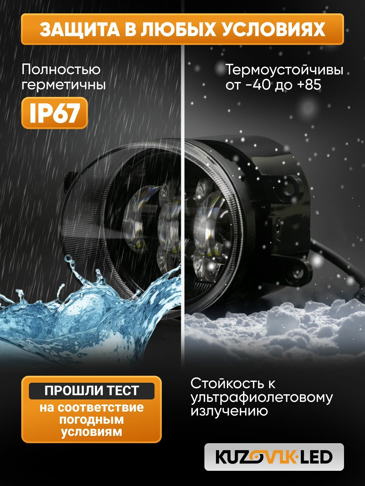 Купить Противотуманные фары LED 70W для Тойота Ленд Крузер Прадо Toyota Land Cruiser Prado (2009-2017); ПТФ с регулировкой 1 режим света — белый; туманки универсальные светодиодные комплект, 2 шт с доставкой по всей России.