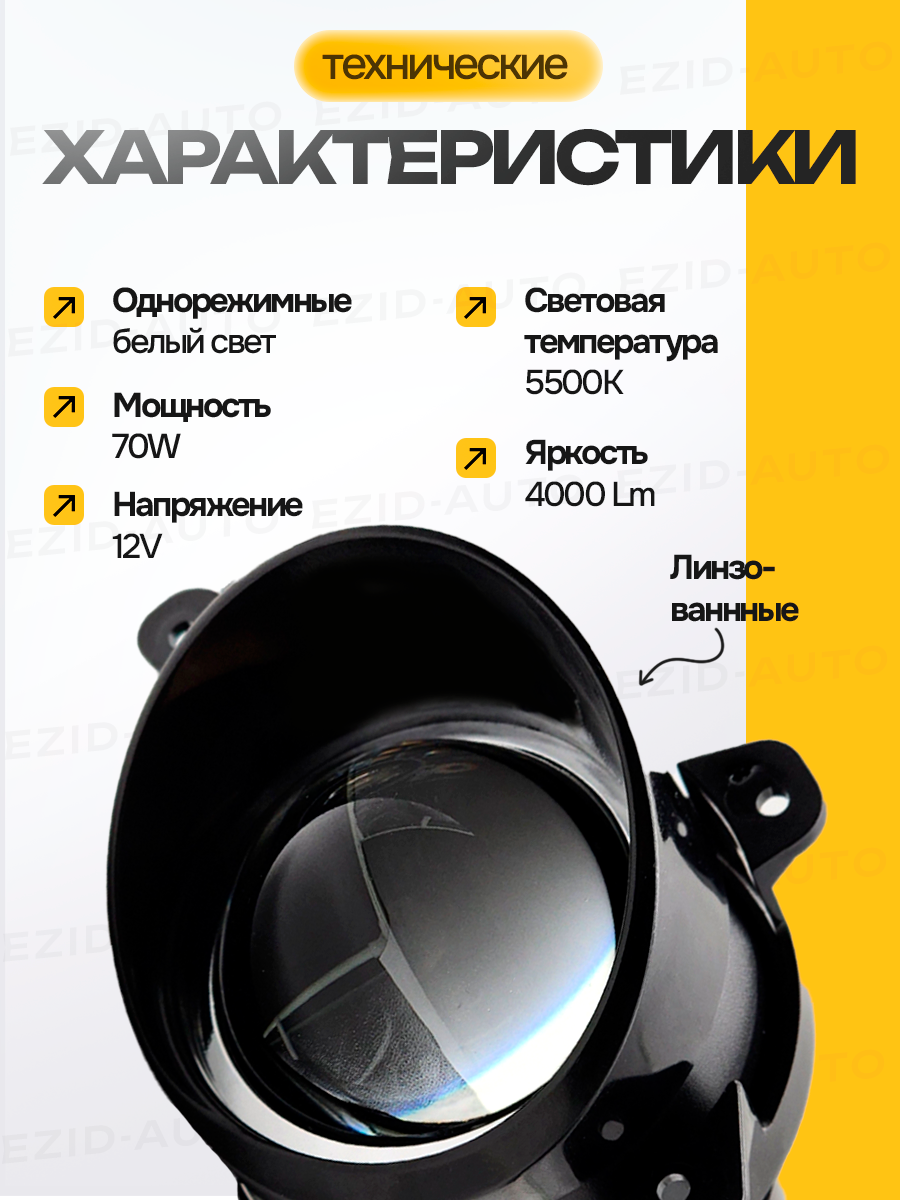 Купить Противотуманные фары линзованные Лада Калина Гранта Ларгу, 70 Ватт ближний свет с доставкой по всей России.