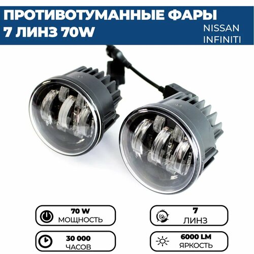 Противотуманные фары ПТФ светодиодные, 70W 7 линз для Nissan X-Trail II Qashqai II Murano Juke Infiniti EX FX II, 2 шт.: сравнение цен, характеристики, фото, актуальное наличие и цены.