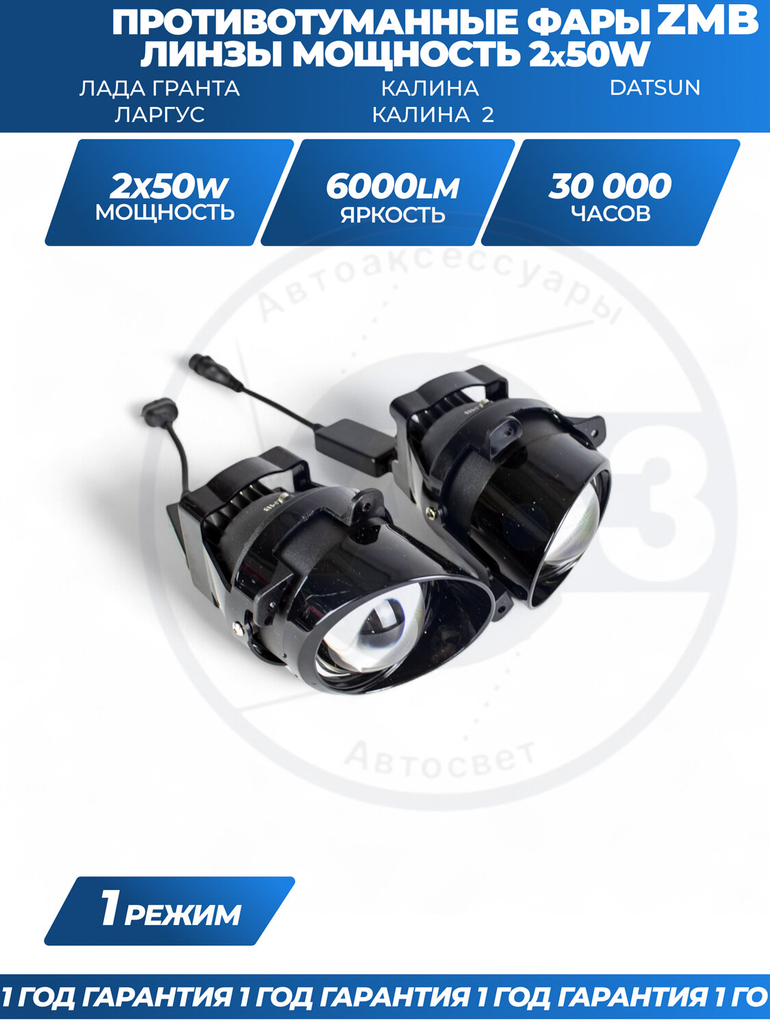Цена указана за комплект Противотуманные фары Гранта (противотуманные линзы модуль) ZMB ПТФ Гранта 2х50W однорежимные ближний свет 2шт.