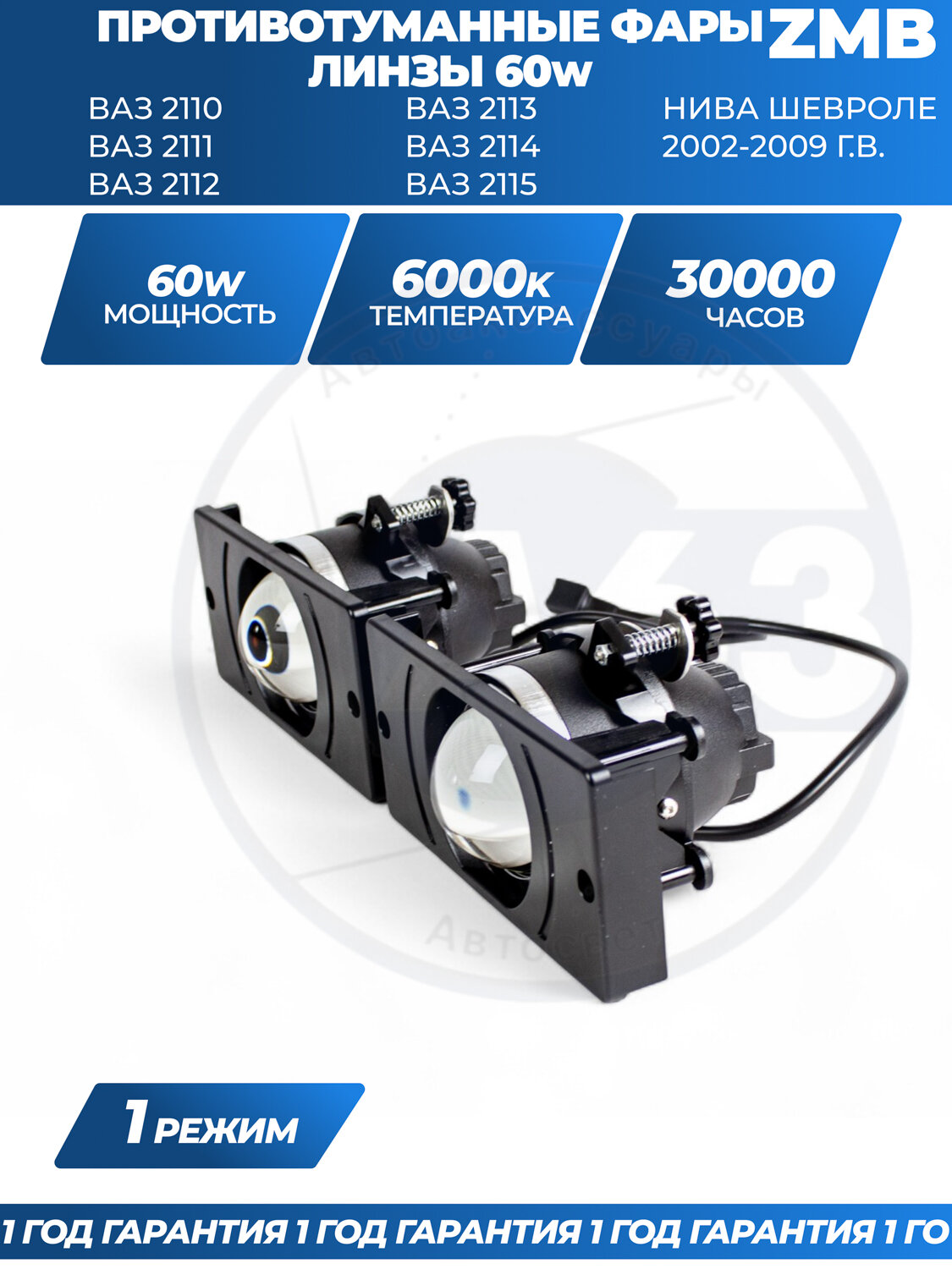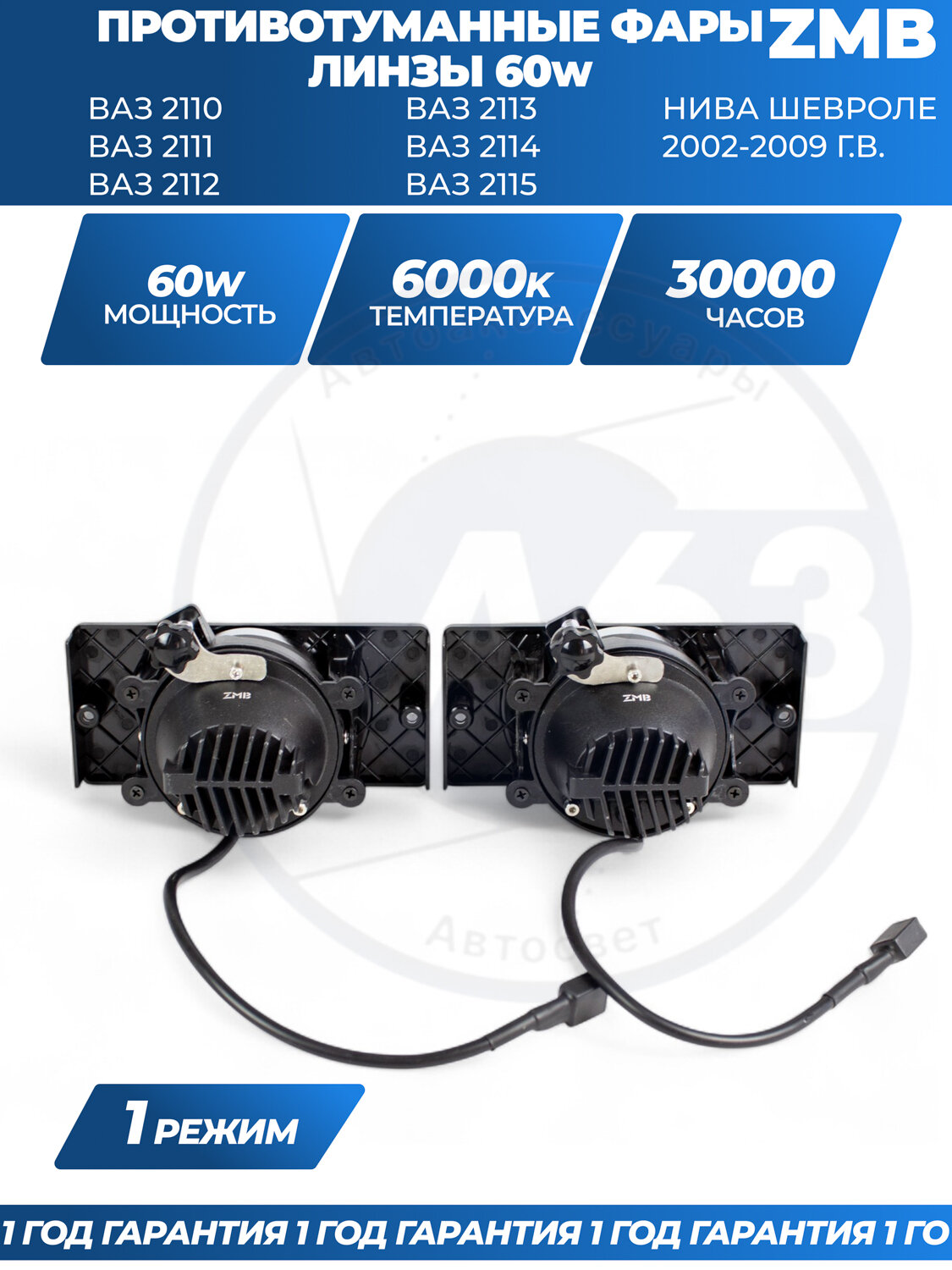 Противотуманные фары ПТФ светодиодные линзы (модуль) ZMB 60W для для ВАЗ 2110, 2111, 2112, 2113, 2114, 2115, 2 шт.: сравнение цен, характеристики, фото, актуальное наличие и цены.