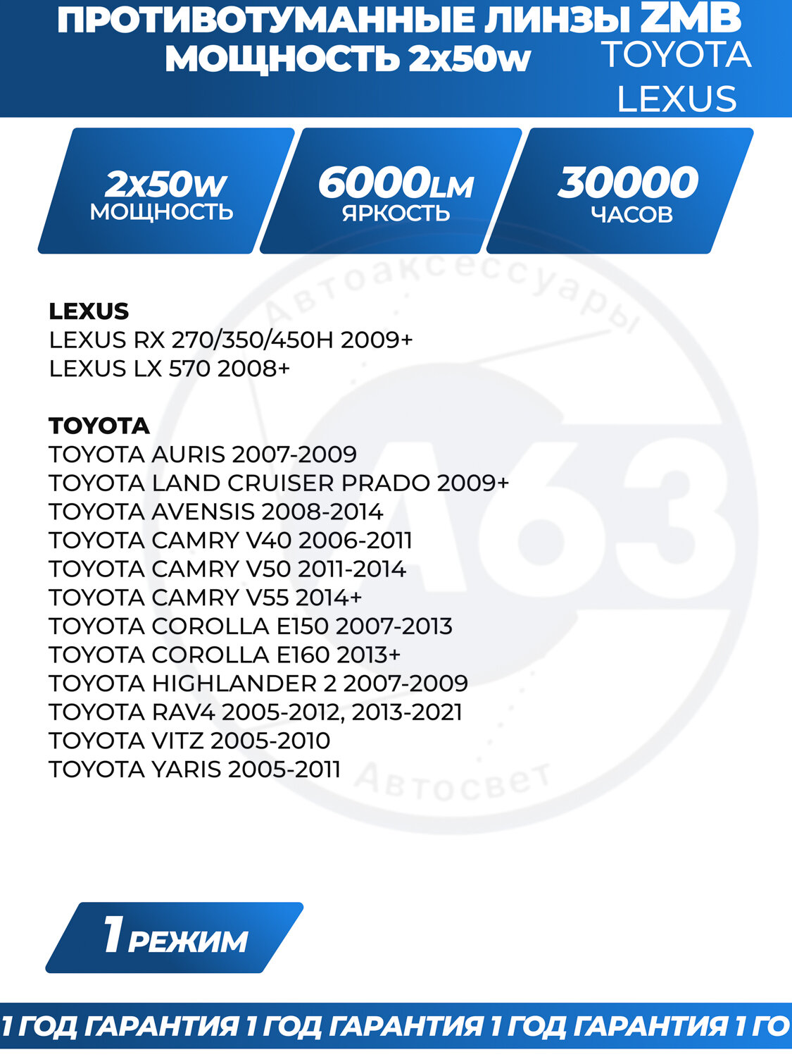 Особенности данных ПТФ ZMB Тойота 60w: