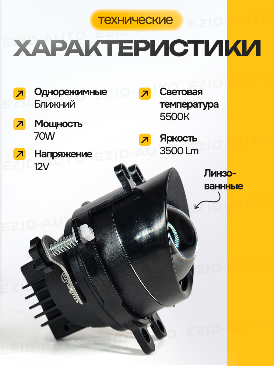 Противотуманные линзованные светодиодные ПТФ на Тойоту и Лексус на 70W, комплект из 2 шт. Туманки имеют одну большую линзу, что обеспечивает более широкий луч света. Фары изготовлены под штатные крепления и идеально подходят для родных пазов противотуманных фар. Крепления обеспечивают лёгкую установку. Cветoвoй пучок ярчe штатнoго ближнегo света и имеет правильную светотеневую границу (стг), за формирование которой отвечает одна огромная линза в каждой фаре, поэтому он не слепит встречное движение. Туманки изготовлены из высококачественных материалов. Не подвержены коррозии.