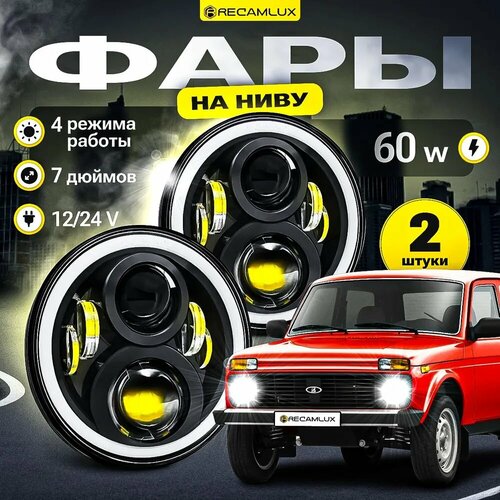 Название: Фары RecamLux ангельские глазки, светодиодные, противотуманные, для ВАЗ Нива, LADA, УАЗ, ГАЗ, Mercedes-Benz и ЗИЛ, 2 штуки, 60Вт, 12/24 В.