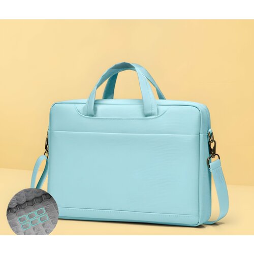 Противоударная сумка для ноутбука диагональю 13-14 дюймов выполнена в небесно-голубом цвете, который придаст вашему образу свежесть и легкость.